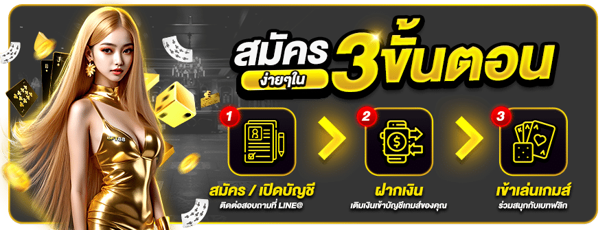 ตอบ : - กรอกข้อมูลในฟอร์มสมัครสมาชิกบนเว็บไซต์ ระบุเบอร์โทรศัพท์และบัญชีธนาคาร รอรับ username/password ทางข้อความ เริ่มเล่นได้ทันที